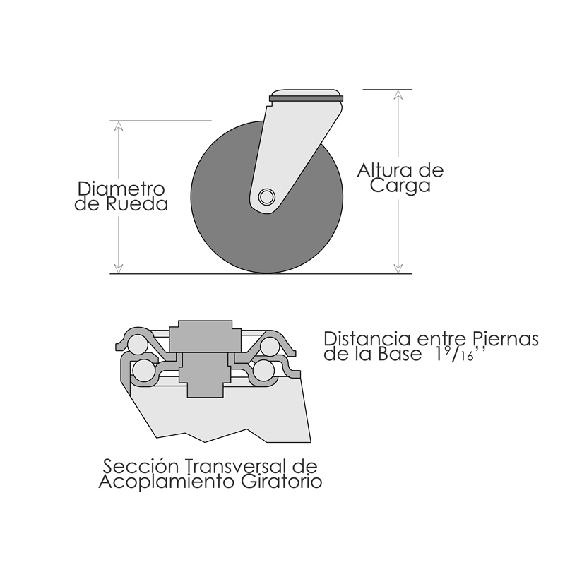 - Doble hilera de baleros en giro para mejor desempeño y resistencia.Eje de rueda de 3/8".
