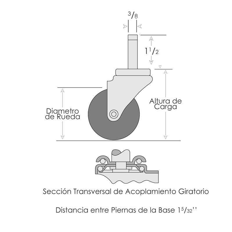 En medidas desde 1-5/8" hasta 3" de diámetro y 7/8" de ancho con capacidades desde 60 hasta 75 libras cada una. Diseñadas principalmente para ser usadas en la fabricación de muebles de madera por su exclusivo diseño dentado en su pista superior para ser fijadas fácilmente de manera segura. Disponibles con ruedas de Poliolefino, Performa, Hule suave y Poliuretano HiTech. Su doble hilera de balines le agrega fuerza y durabilidad.