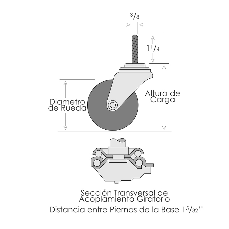 No. de Modelo | Descripcion de Rodaja | Diametro de Rueda | Ancho de Rueda | Capacidad por Rodaja | Rueda | Balero | Altura de Carga | Radio de Giro | Peso |